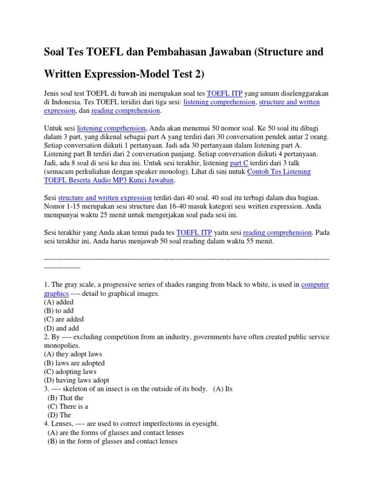 Download Soal Toefl Listening Dan Jawabannya / Soal Tes TOEFL dan Pembahasan Jawaban.docx | Test Of / 20210112 kunci jawaban toefl listening .